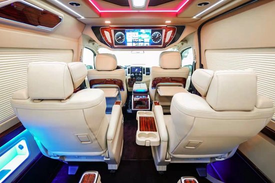丰田(进口)海狮-HIACE驾驶舱升级9寸导航,(华通丰业)搭配360度全车影像,桃木方向盘,升级了原厂桃木纹内饰改为进口豪华感顿显。(华通丰业)主副驾驶座椅真皮包覆,主副驾驶座椅四向电动调节带通风加热,(华通丰业)主副驾驶中间升级车载扶手冰箱。丰田(进口)海狮-HIACE主副驾驶后面,加装了24寸高清液晶电视娱乐系统,全车升级阿尔派音响系统。