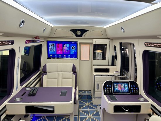 丰田考斯特商务车采用舒适性极高的真皮座椅、车内不同区域都配备了多样化娱乐系统,整车采用优质材料打造,且在配置上也非常智能化和人性化,能够满足客户的出行需求。